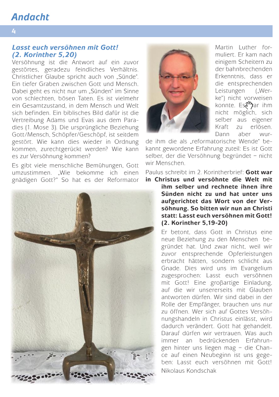 Andacht von Pastor Nikolaus Kondschak im Kirchenquintett 02/2018: